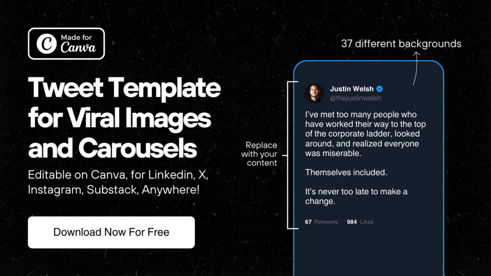 Get access to the design and template of LinkedIn, and tweet threads used by experts like Justin Welsh, Dan Koe, and Matt Gray.